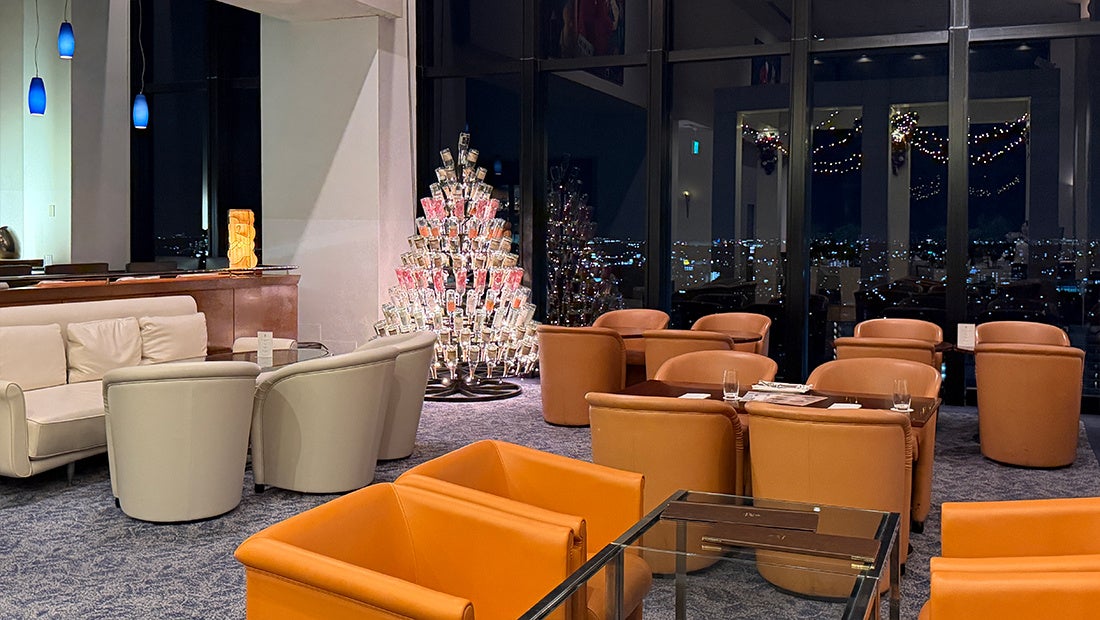 トップラウンジ(19F)にはワインボトルを使ったクリスマスツリーが登場