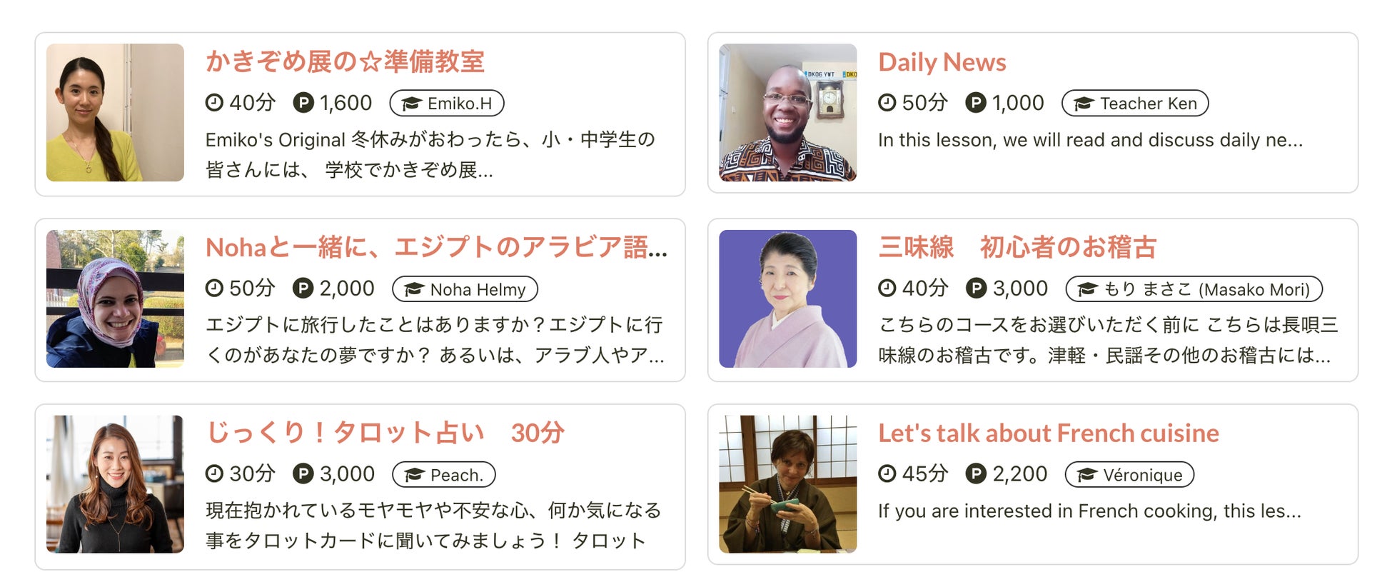 カフェトークのオンラインレッスンを探す:https://cafetalk.com/lessons/?lang=ja