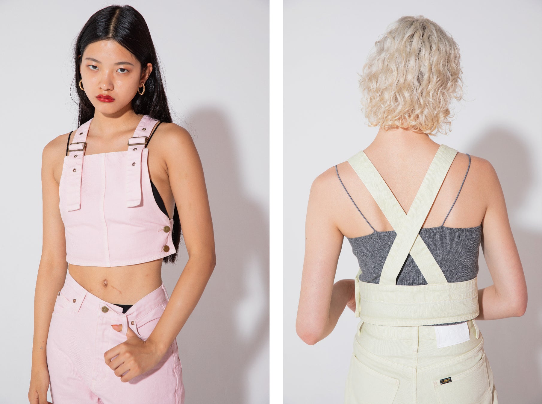 Leeオリジナルのハイウエストテーパードデニムをベースに、ウエストからヒップのラインが美しくみえるバランスにこだわりました。単品使いはもちろん、ビスチェとのセットアップ着用がおすすめです。