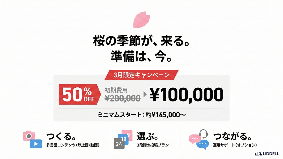 〜3月限定・初期費用 50%OFFキャンペーン。Instagram SEO / Google MEOまで一括支援でインバウンド対策を実現〜