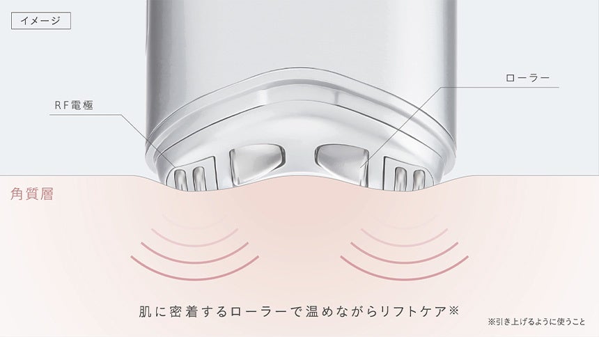 RFとは、肌の細胞内の分子を振動させて、肌の内側を温める機能。そこにヒーターで温感をプラスし、さらに心地よくハリ弾力ケアができます。