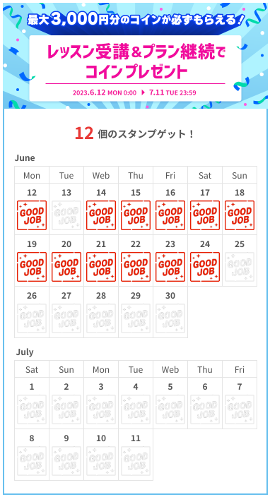 レッスンを受講すると、1日につき1つのスタンプを獲得することができます。