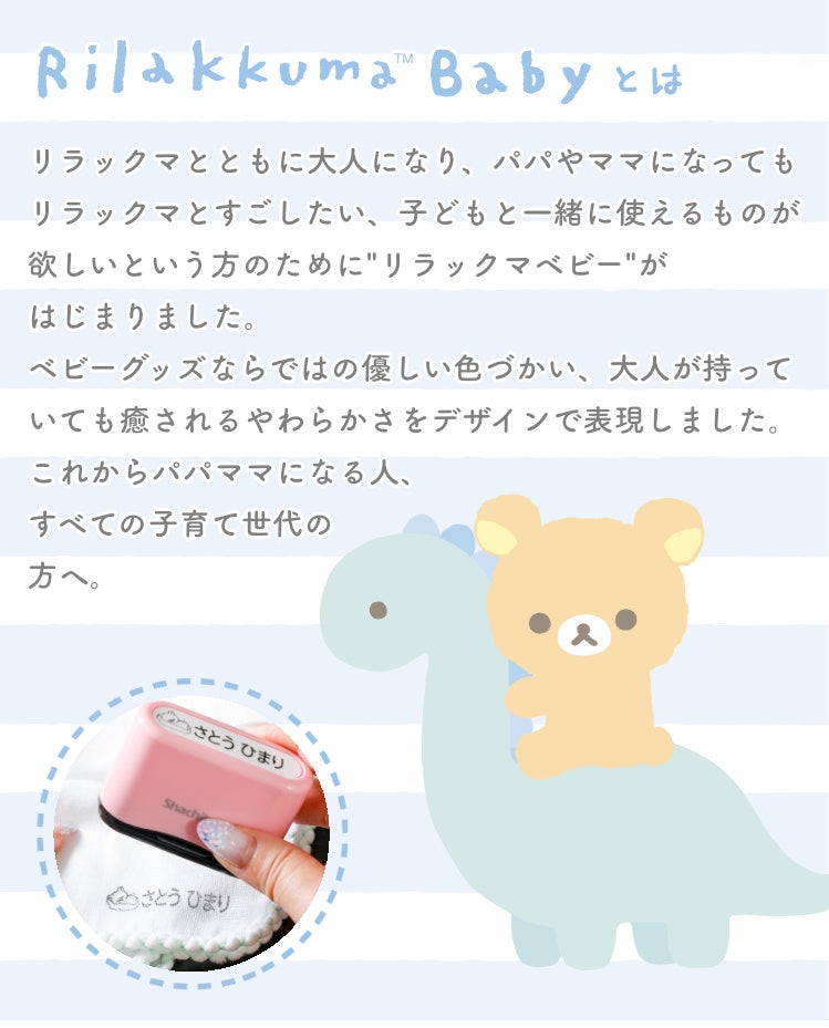 布プラOK!?かわいいリラックマが自分のもちものを教えてくれるお名前つけはんこ「リラックマベビー もちものスタンプロング」の販売スタート。