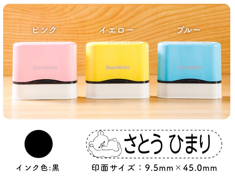 リラックマ初となるベビーグッズブランド「リラックマベビー」のかわいいイラストが目じるしに。布やプラスチックなどあらゆる素材にポンポン押せて洗濯や洗い物もOK。とっても便利な一行タイプのネームスタンプ。