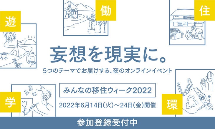 新感覚オンラインイベント「みんなの移住ウィーク2022」6月14日(火)~24日(金)開催