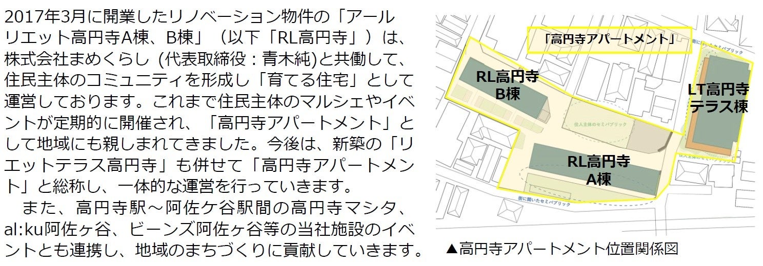 ~アールリエット高円寺と一体となってコミュニティ形成を推進します~