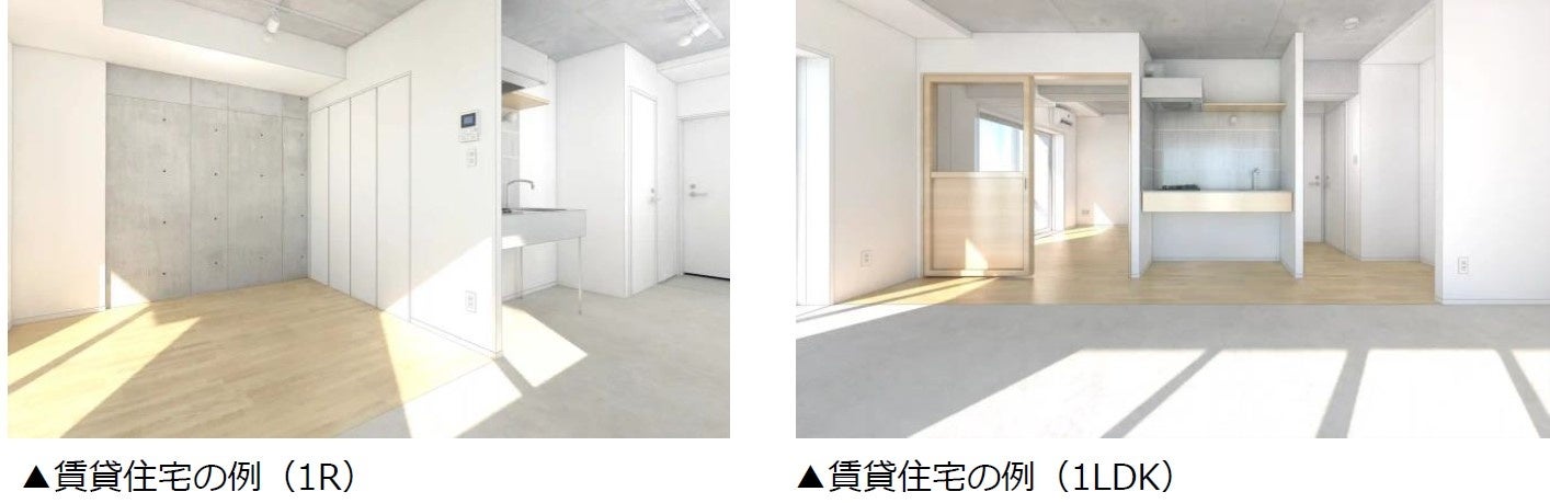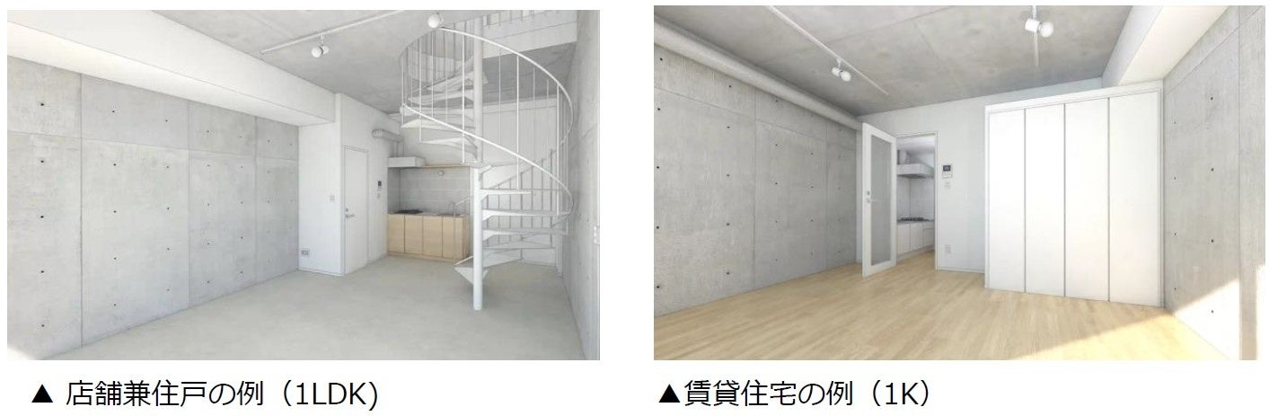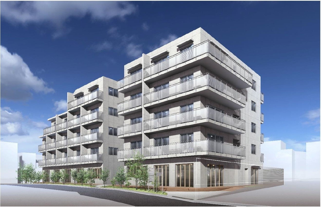 本物件は「働き方や働く場所の多様化に対応した『自分らしく暮らす』賃貸住宅」をコンセプトとしており、5階建てに、42戸の一般住宅のほか、1階西側道路に面する場所に店舗が2区画、店舗兼用住戸4戸を配置しています。また、建物内に仕事や住民交流など多様な「居場所」と「きっかけの場」となる共用部を点在させることで、建物全体で「自分らしく暮らす」を表現しています。