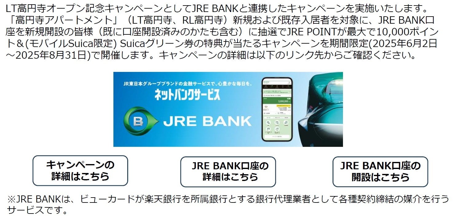 (2)高円寺アパートメント × JRE BANK 新規および既存入居者向けキャンペーンを実施