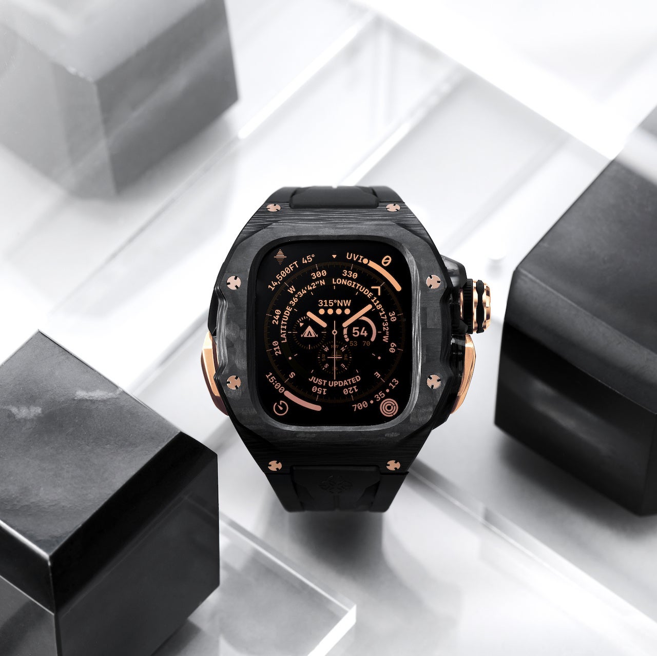 「ゴールデンコンセプト」の人気コレクション「RST45」の後継モデル「ULTRA STEEL EDITION」を含む、Apple Watch ULTRA対応ケースが多数店頭に並びます。
