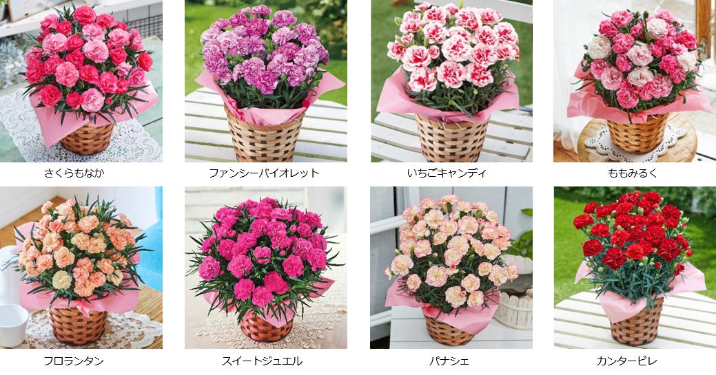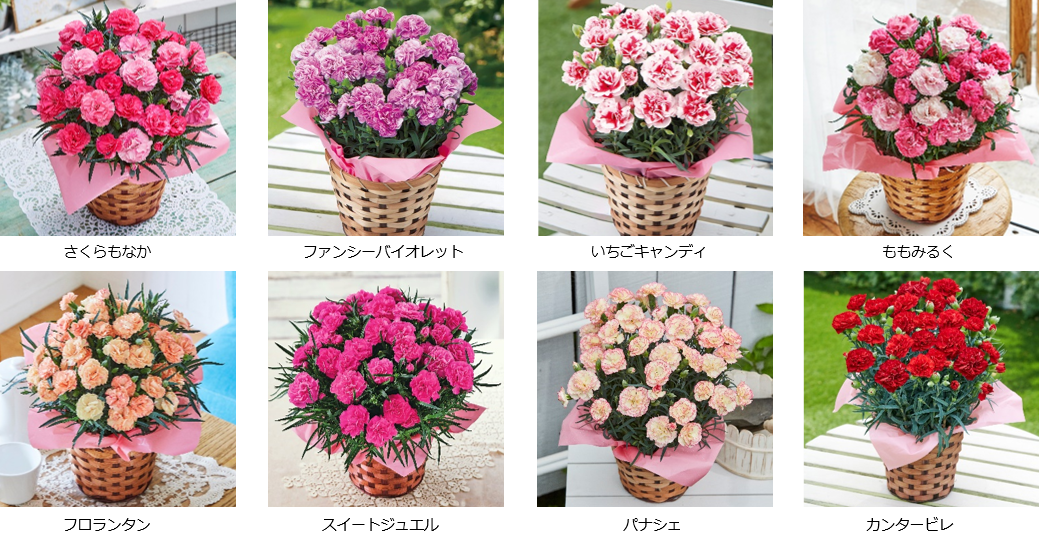 ※URLはさくらもなかの商品ページです。ページ内リンクより、その他のカーネーションもご確認いただけます。