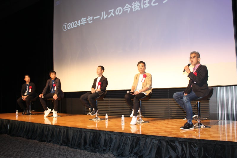 最後のセッションはAステージにて「2024セールスの今後はどうなる?」というテーマで、【株式会社光通信 代表取締役社長 和田 英明 氏】、【元経済産業省官僚/慶應大学大学院教授 岸 博幸 氏】、【株式会社Major7th 代表取締役社長 丸尾 浩一 氏】、【株式会社アイドマ・ホールディングス 代表取締役 三浦 陽平 氏】、【Wiz・山崎】が登壇しました。