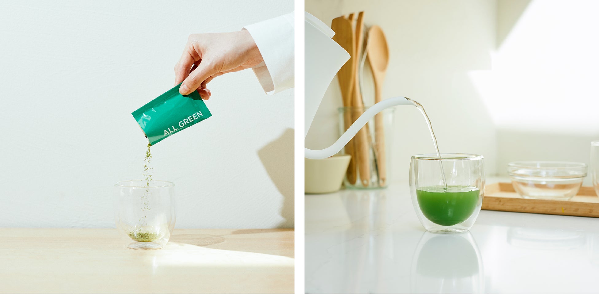 ALL GREENでは、“緑茶の栄養をまるごと摂る”飲み方が、“嗜好”と“健康”とを両立した、緑茶ならではの新しいスタンダードになると考えています。