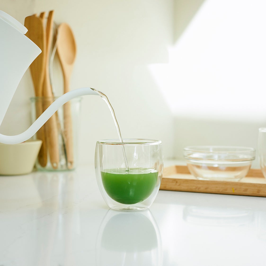 そこに着目し“緑茶の栄養をまるごと”摂る方法について数年にわたる研究をつづけた結果、粉末にした茶葉に特殊な技法を施すことにより、美味しさと栄養を損なわないまま「お湯や水ですぐ溶ける顆粒タイプ化」に成功しました。