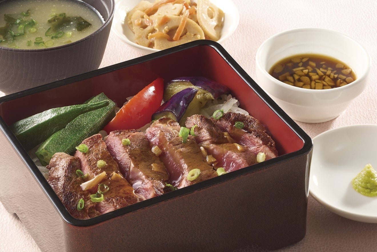 オーストラリア産の脂身が少なくさっぱりした牛ヒレ肉をお重スタイルで楽しむステーキ丼。
