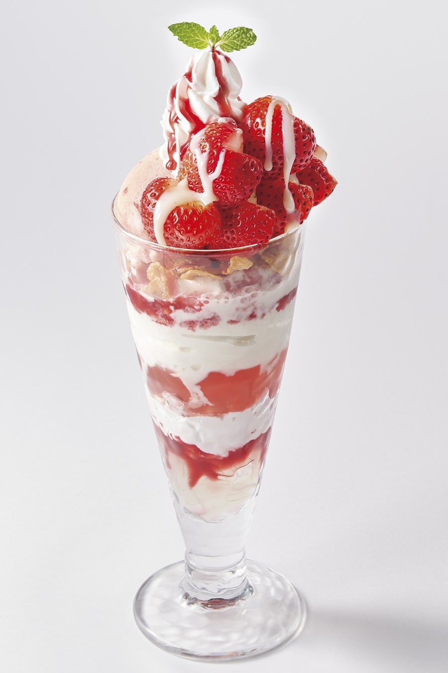 いちごの多彩な味わいに、ミルキーな練乳とコーンフレークのサクサク食感がアクセント。