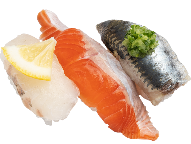 (ひらめ・金華サーモン・とろいわし)』