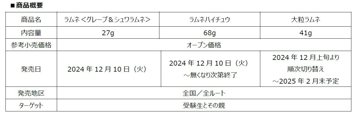 「大粒ラムネ」 12月上旬より期間限定“受験生応援パッケージ”新商品「ラムネ<グレープ&シュワラムネ>」「ラムネハイチュウ」12月10日(火)より新発売