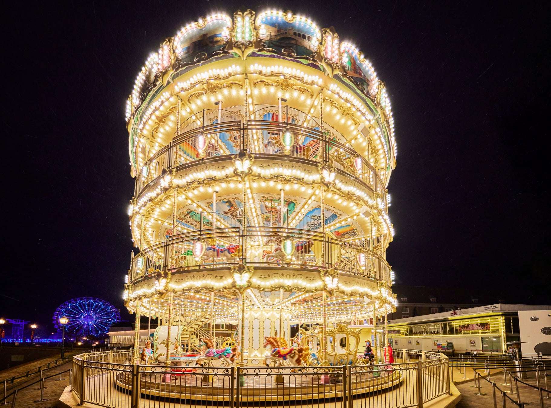 - 日本でここだけの3階建てメリーゴーラウンドとともに 光輝く美しい街並みでグルメやショッピングを楽しむ『クリスマスタウン』