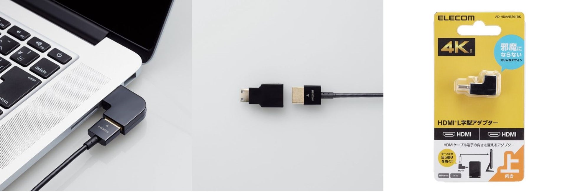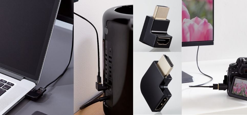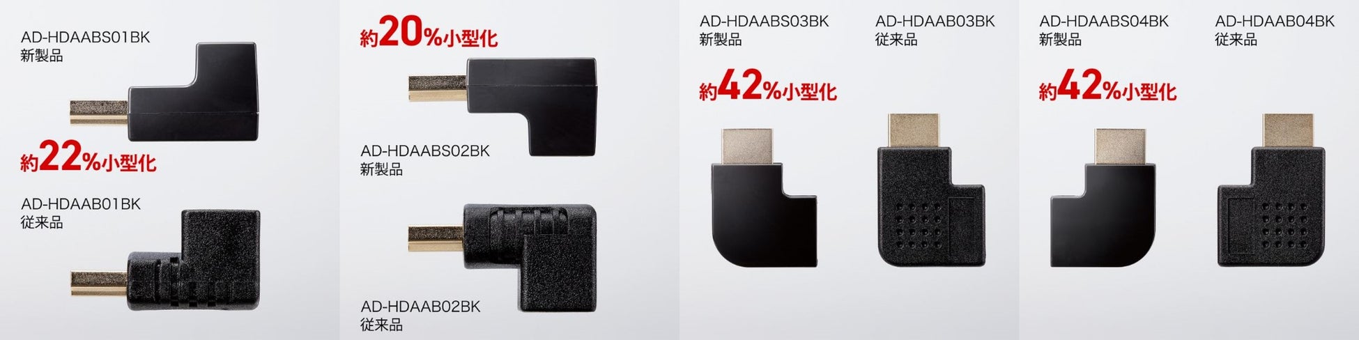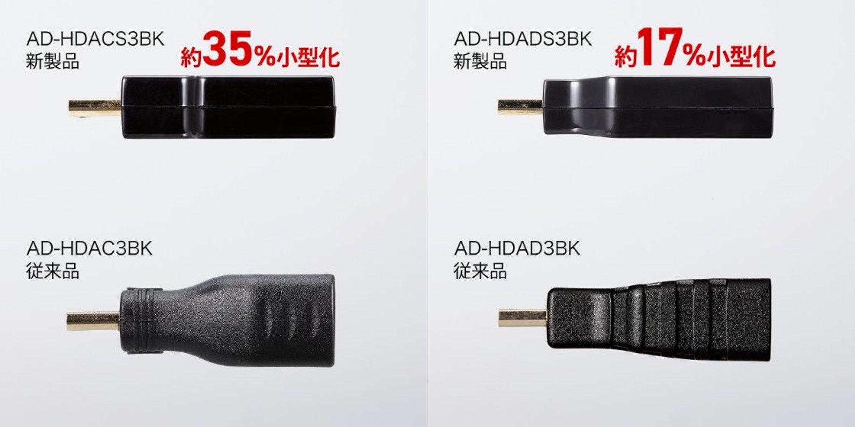配線時の省スペース化を助ける!最大42%小型化し、スーパースリムケーブルともマッチするHDMI L字型アダプターとHDMI端子変換アダプターを新発売