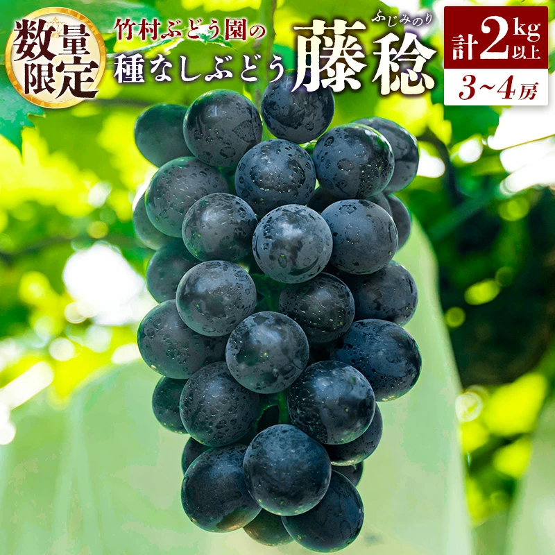 □返礼品名:<先行予約>竹村ぶどう園の種なしぶどう「藤稔」計2kg以上(3~4房)
