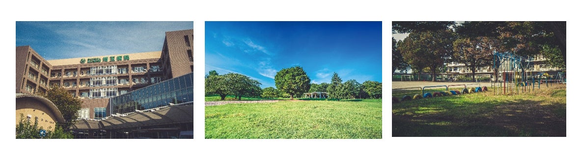 ※左から、国立病院機構埼玉病院(徒歩8分)、光が丘公園(徒歩13分)、第四小学校(徒歩7分)