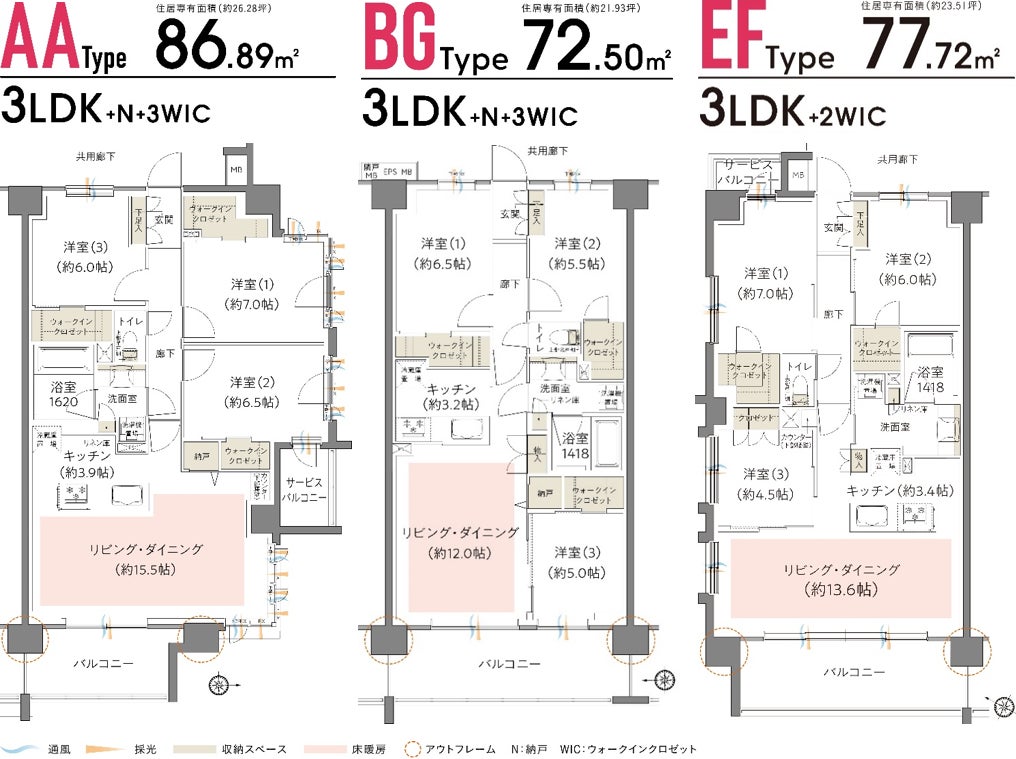 多彩なライフスタイルに応える平均専有面積70㎡超、全48タイプバリエーション。