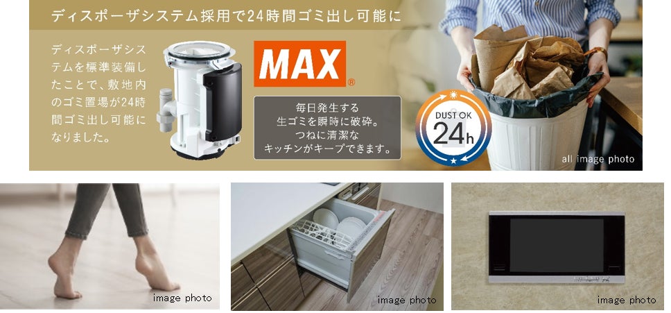 生ゴミを独自の回転ブレード破砕方式で静かに簡単に処理するディスポーザシステムを標準装備。これにより24時間ゴミ出しも可能になりました。また、ガス温水式床暖房や食器洗い乾燥機、浴室テレビを設置するなど、暮らしやすさを追求した充実の設備仕様が便利で快適な暮らしを叶えます。
