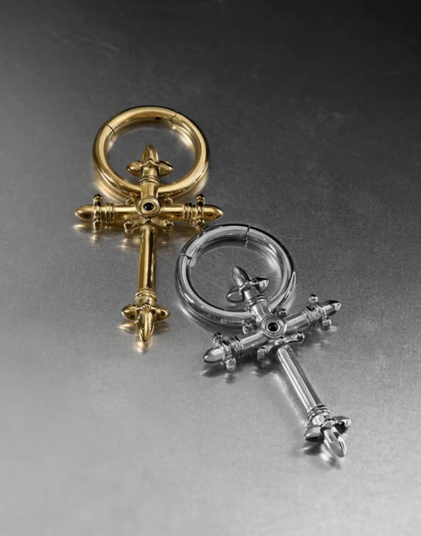 「Sacred Heart Earrings」は、ブランドの代表的なアイテムのひとつで、精巧なハートデザインが特徴。エレガントさとパンクな要素が絶妙に融合しており、シンプルながら強い存在感を放つ。特にラッパーやアーティストの間で人気が高く、光を受けるとハートの輪郭が際立ち、美しい輝きを放つ。