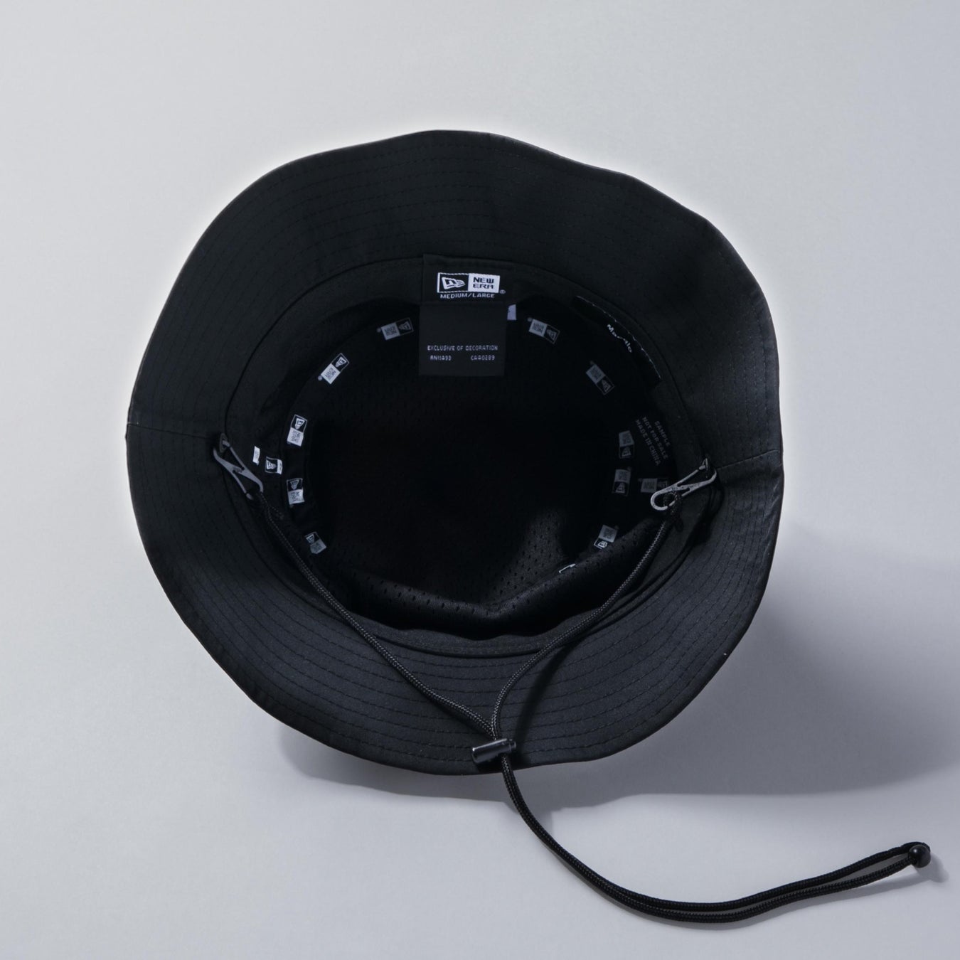 特徴:独自素材「ultimex」を使用し、水洗い可能で、汚れに強く、撥水・速乾の高機能に優れたバケットハット。取り外し可能なドローコードを搭載。柔らかく快適な被り心地で、コンパクトに丸めてカバンやポケットに収納可能。普段使いだけではなくアウトドアやスポーツシーンでの着用もおすすめです。ニューエラのロゴ含め黒一色に仕上げました。