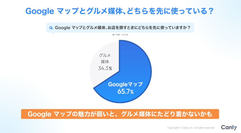 さらに、新しい検索手段を活用する層であっても、それだけでお店選びを完結させているわけではありません。複数の情報源を行き来して比較検討を行っており、特に「マップ」と「グルメ媒体」の使われ方には明確な順番が存在することがわかりました。