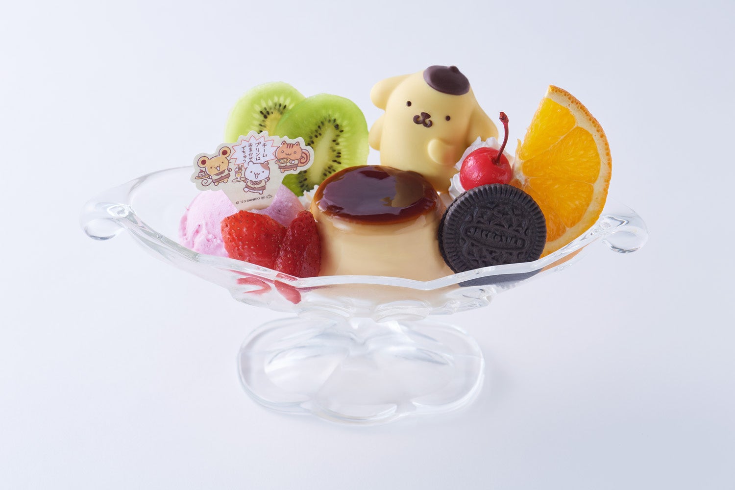 チームプリン漫画第20話をイメージしたプリン・ア・ラ・モードが登場☆ぷるぷるプリンやアイス、フルーツが盛りだくさんの可愛くて楽しいデザートです♪