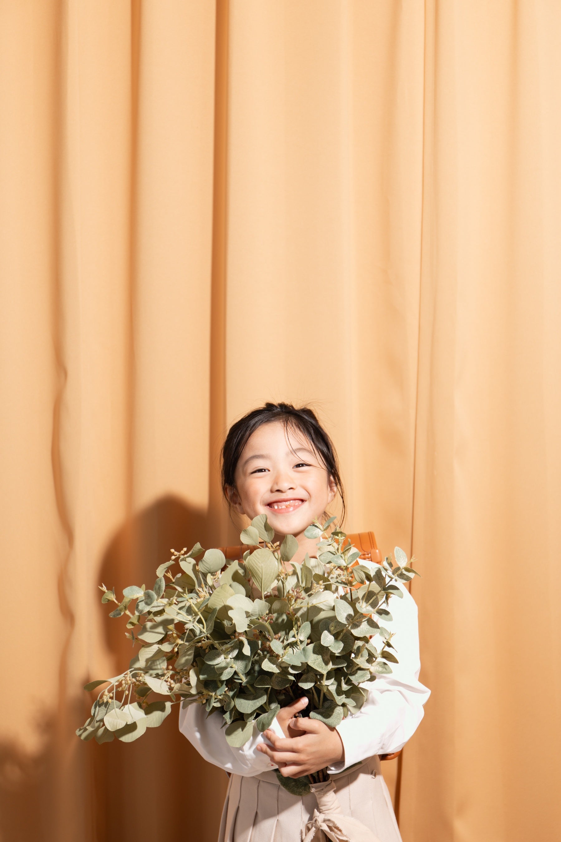 午後の柔らかな光に包まれた元気いっぱいの一年生をビジュアルにしました