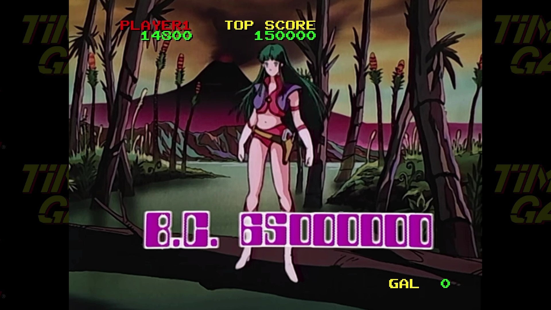 タイトーが発売したLD(レーザーディスク)アニメーションゲームの第3弾をHDリマスター化。タイムマシンを強奪して過去の世界へ逃亡した未来の大悪党ルーダを、歴史保安警察のエース「タイムギャル」ことレイカが過去の時代に遡って追跡していきます。リリース当時、主人公レイカのキャラクターが人気を呼び、入力をミスした時のリアクションの種類の豊富さから、あえてミスをして楽しむという遊び方も流行しました。