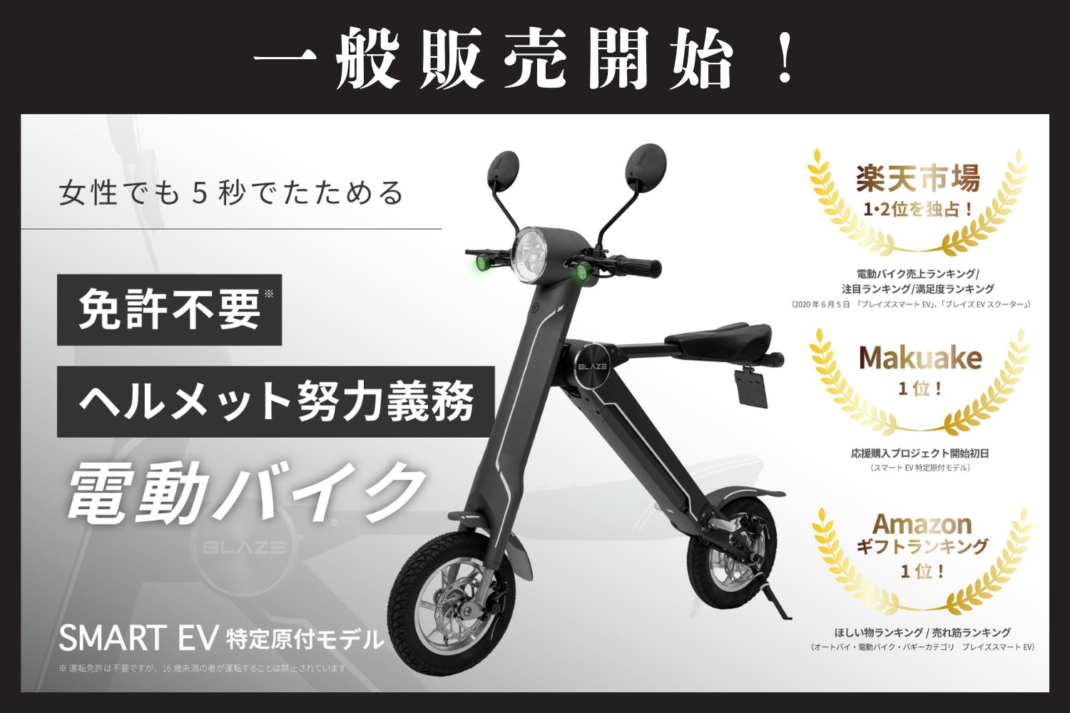 【一般販売開始!】Makuake総合ランキング1位!総額3,700万円以上の応援購入を頂いた話題の新商品「SMART EV特定原付モデル」の一般販売開始のお知らせ