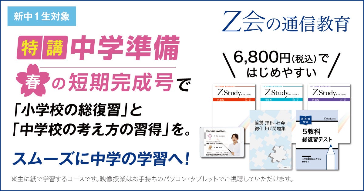 【Z会の通信教育】新中1向け 特講「中学準備 春の短期完成号」申込受付中!