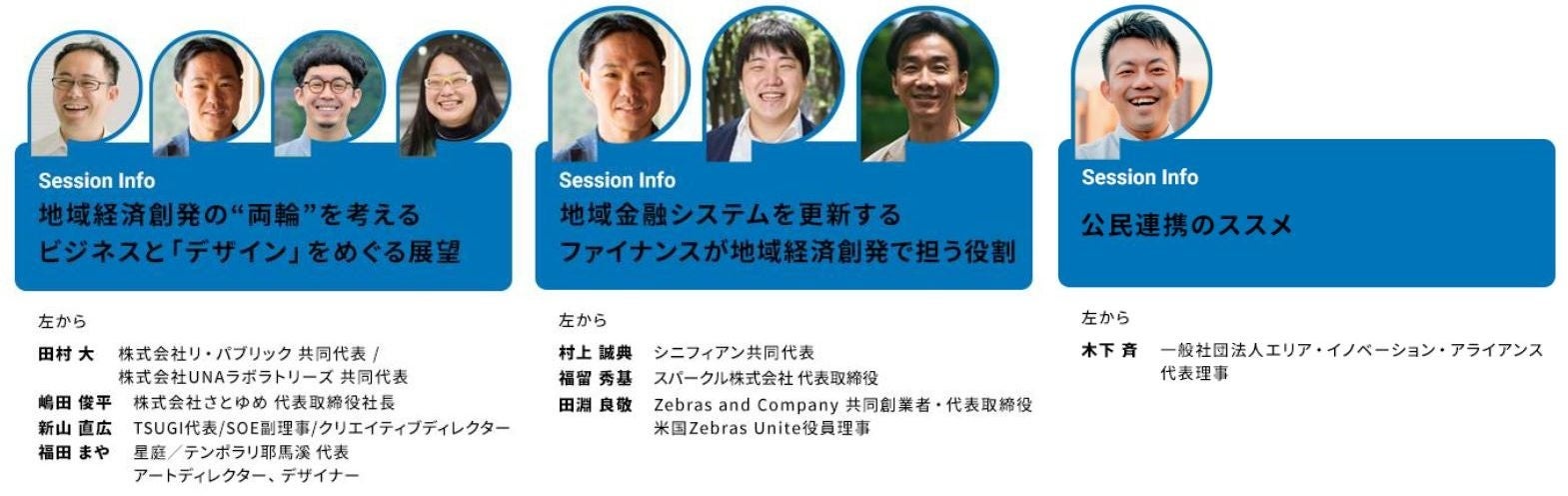 セッション数は、15セッション(登壇者数:36名、フードパートナー3社)。アフターパーティーを盛り上げるフードとサウンドを含め地域プレイヤーと共に本イベントをつくりあげます。