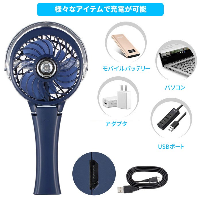 コンパクトなサイズで、手持ち・卓上・クリップ式の3通りに使用可能なUSB扇風機。