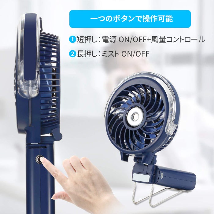 6枚羽で風量3段階式。ミスト機能付きで扇風機と同時に使用可能。これからの夏、デスクやお出掛けに必需品!!
