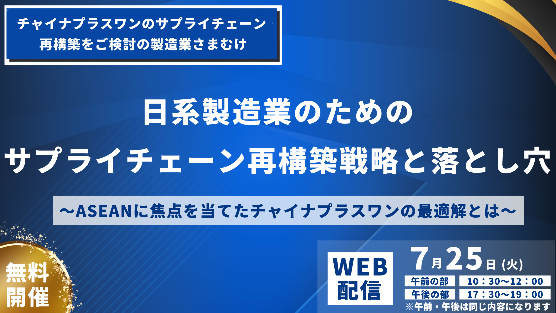 日系製造業のためのサプライチェーン再構築戦略と落とし穴~ASEANに焦点を当てたチャイナプラスワンの最適解とは~を2023年7月25日(火)に開催|物流コンサルの船井総研ロジ