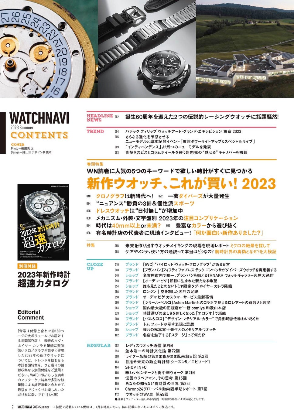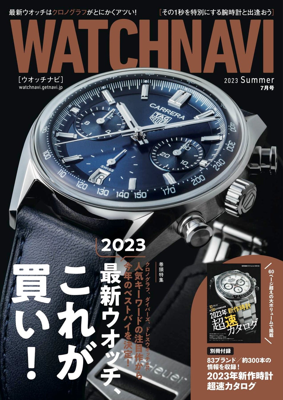 WATCHNAVI 2023年7月号|巻頭特集は「2023年新作ウオッチ、これが買い!」、別冊付録は64ページの新作ウオッチ超速カタログ !!