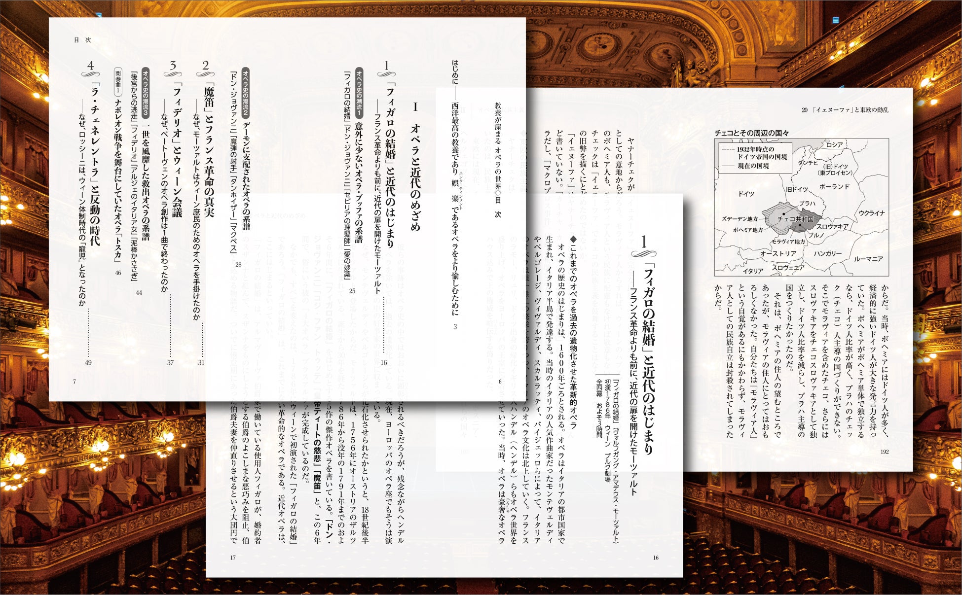 本書は、日本人に人気の『フィガロの結婚』をはじめ、オペラの主要作品を、その背景にある世界史の流れも踏まえて、わかりやすく解説。その作品を観たことがない人でも、オペラ初心者でも、オペラ愛好者であっても、その面白さ、奥深さを堪能できる一冊です。
