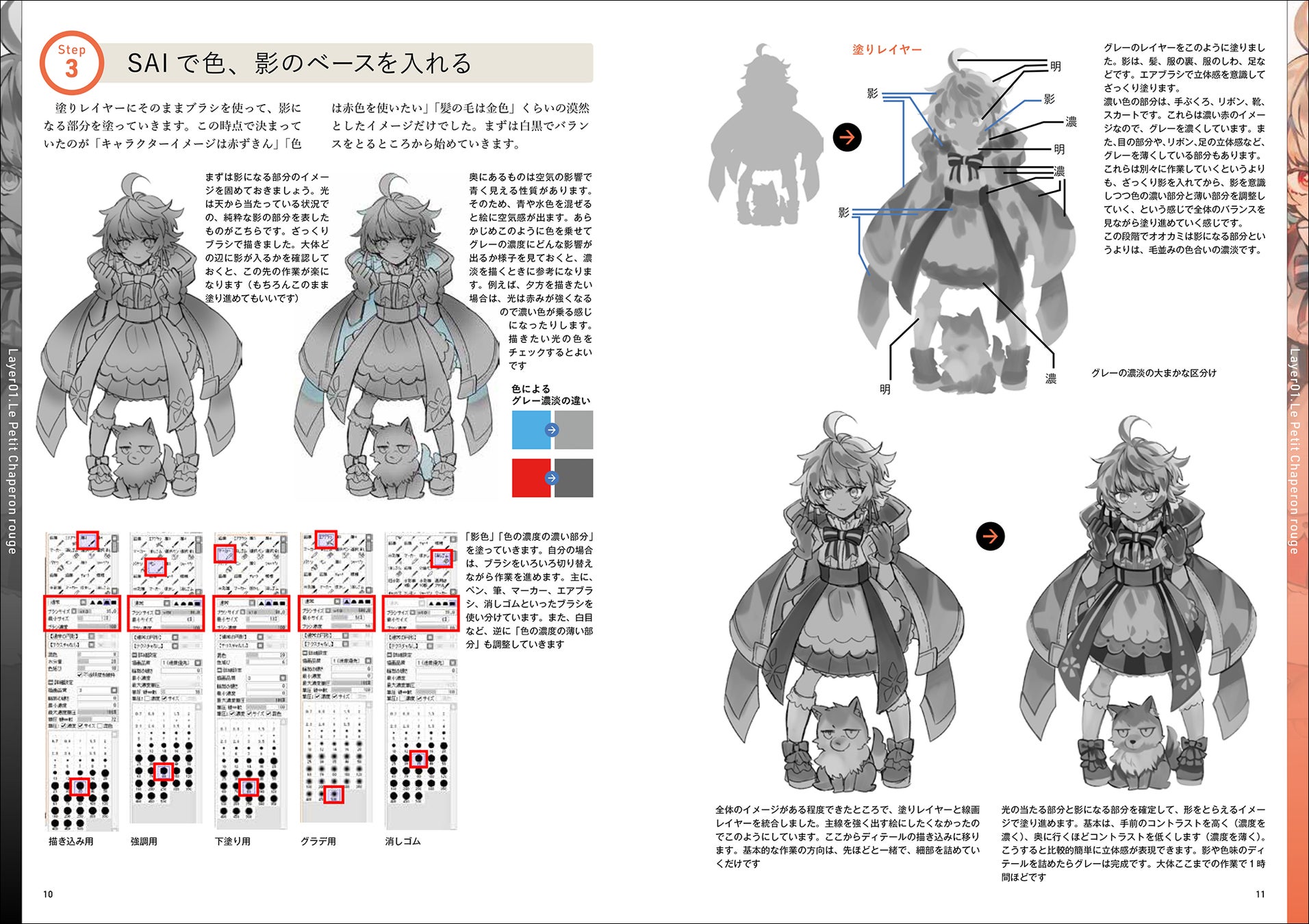 グリザイユ画法とは/簡単な厚塗り/複数キャラでの厚塗り/ヴィネット風グラデ塗り/背景ありの厚塗り/ポスタリゼーション風塗り/水彩風の塗り/アニメ塗り/モノトーン風の塗り/ハイコントラスト風の塗り