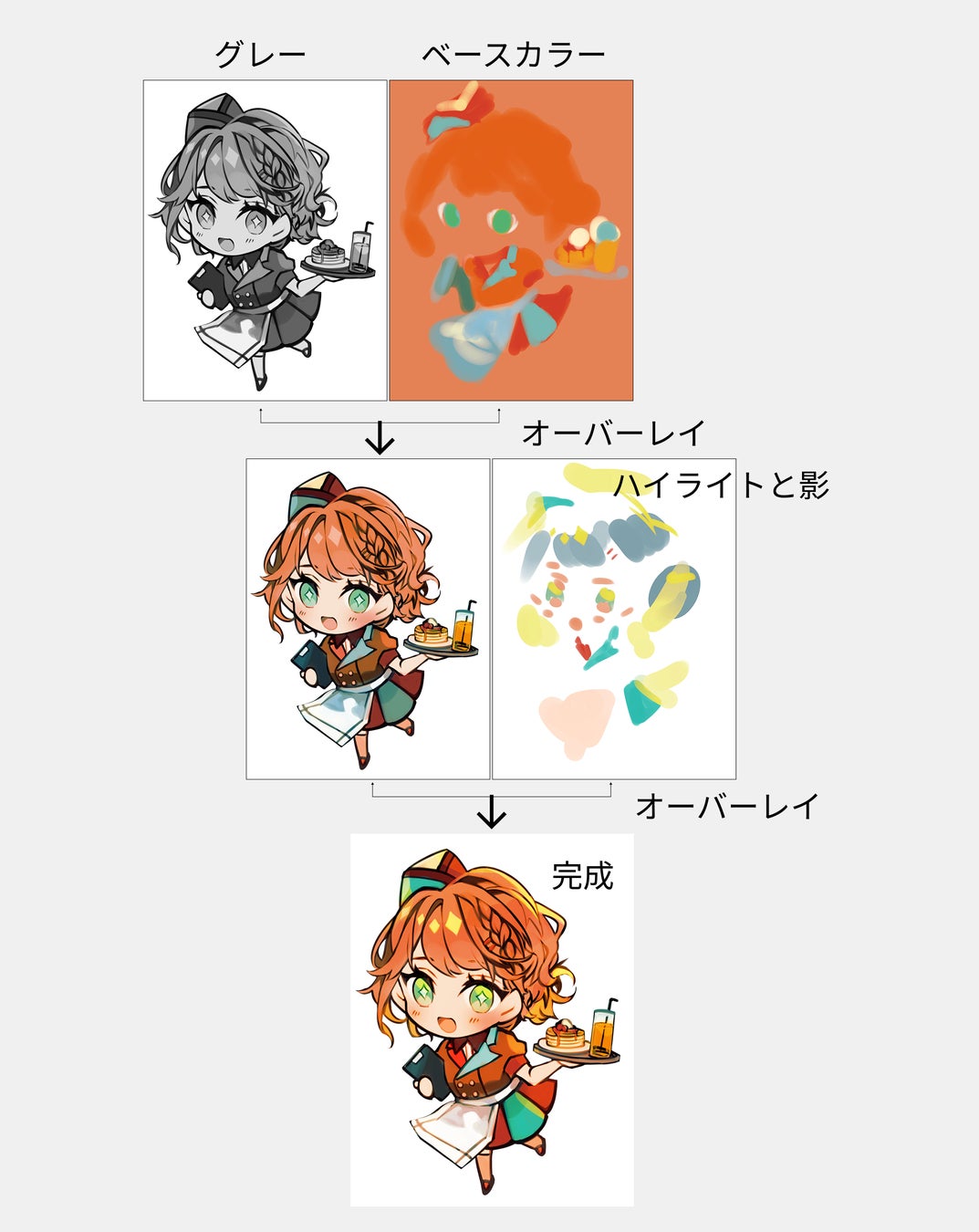 ◆グレーで濃淡や影のベースを入れる