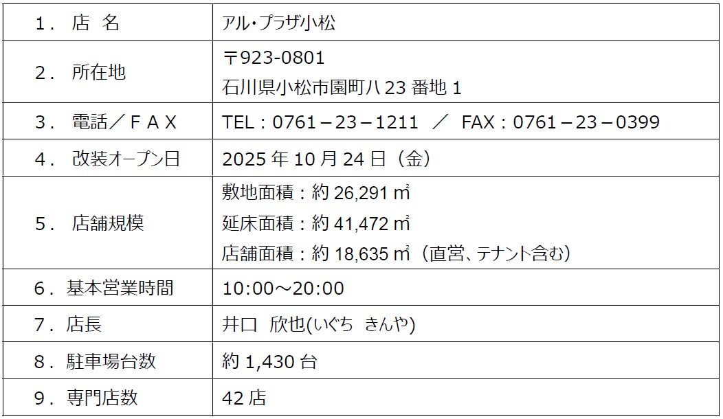 株式会社平和堂(滋賀県彦根市、代表取締役社長執行役員CEO:平松正嗣、以下「平和堂」)は、2025年10月24日(金)あさ10時、アル・プラザ小松(石川県小松市)を全館リフレッシュオープンしますのでお知らせします。