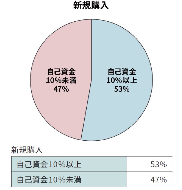 ・ 自己資金拠出割合別では、引き続き、新規購入の5割以上が、金利引き下げ幅が0.05%拡大する「自己資金10%以上」を選択