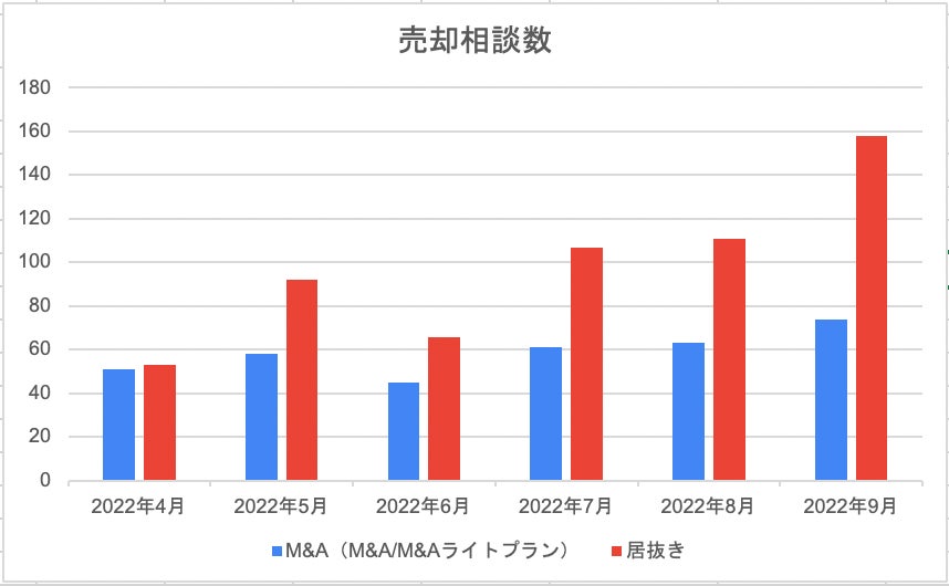 特に夏以降の伸びが顕著で、2022年9月における居抜きでの売却相談は過去最高の数字となっています。