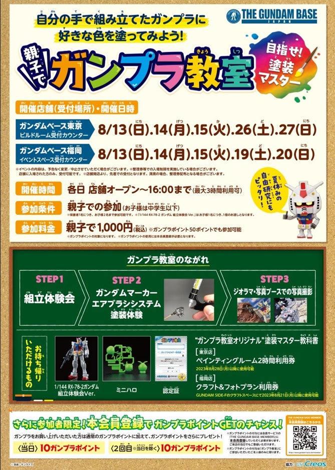 親子で1,000円(税込)で参加可能!詳しくはガンダムベース公式HPにて!