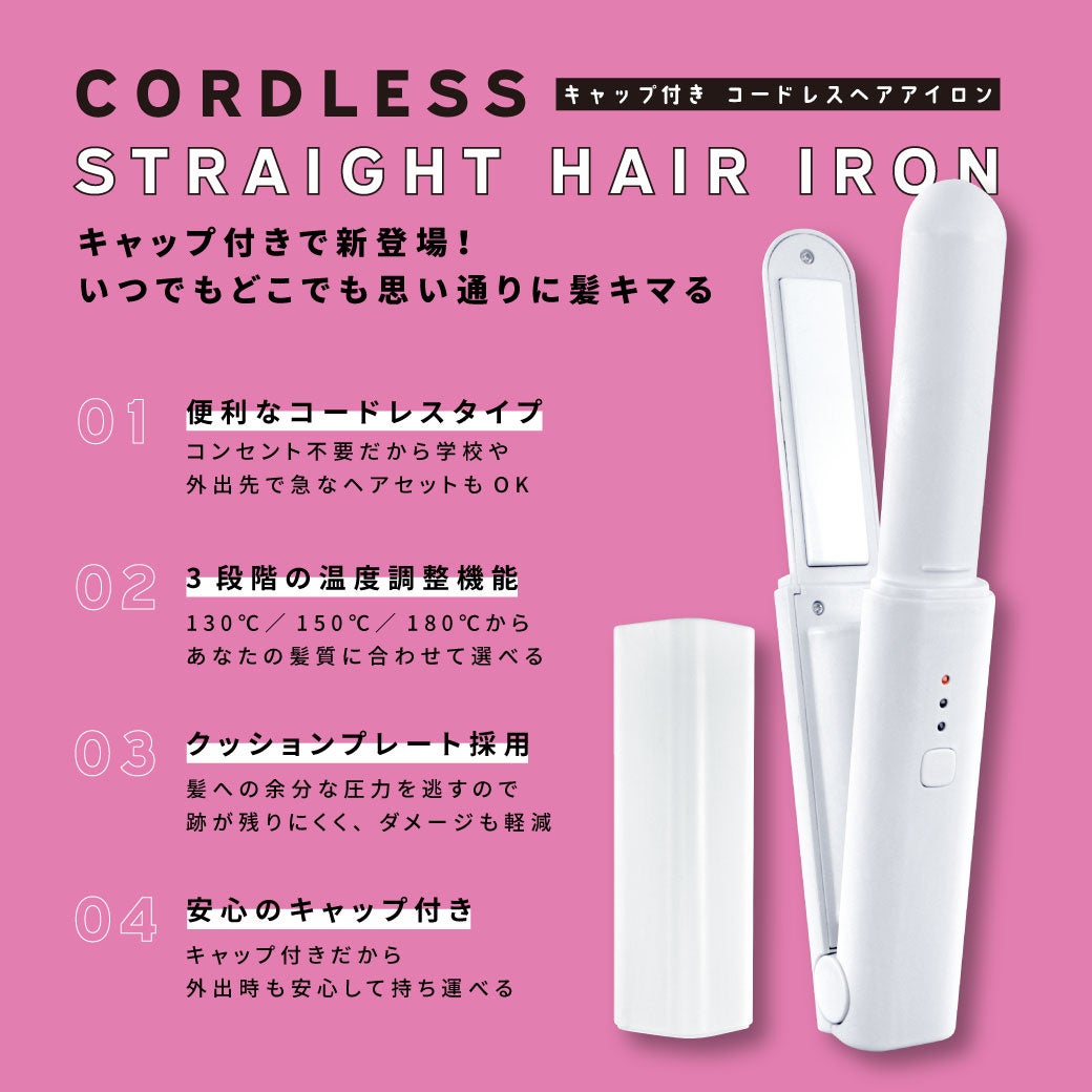 どこでも使える充電式!キャップ付きコードレスヘアアイロン