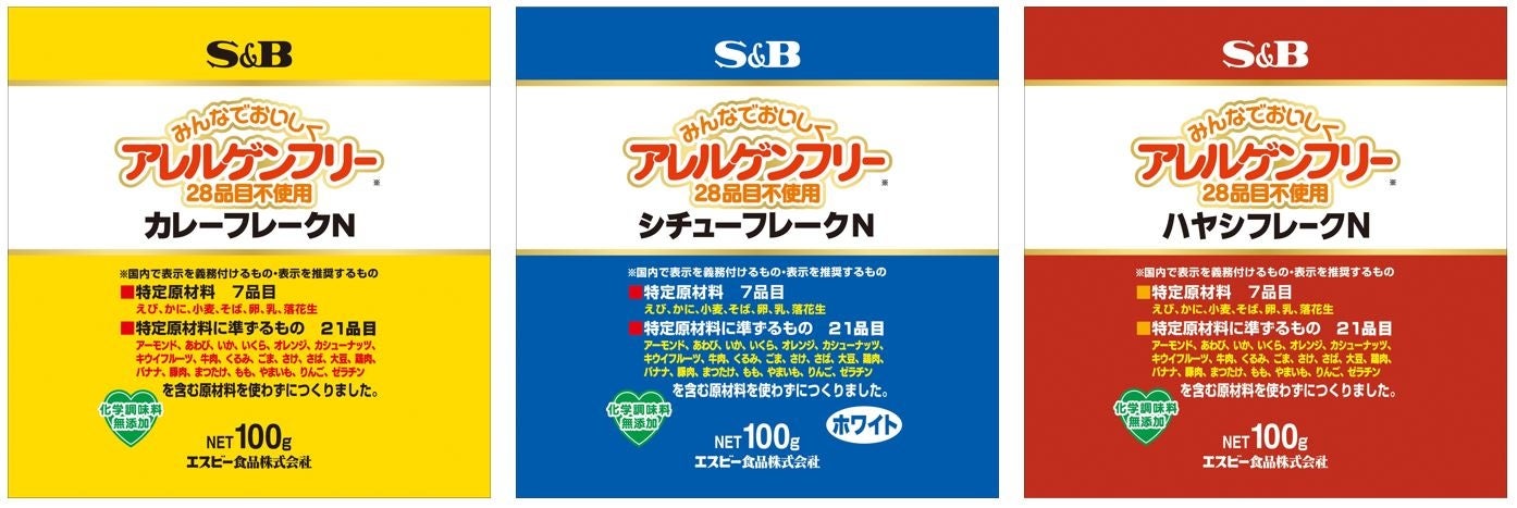 同時に、エスビー食品公式通販「お届けサイト」限定で、アレルゲンフリーフレーク100g3品(カレー、シチュー、ハヤシ)を新発売します。少人数での喫食に適しており、アレルギーを気にせずご家族で同じメニューをお楽しみいただけます。