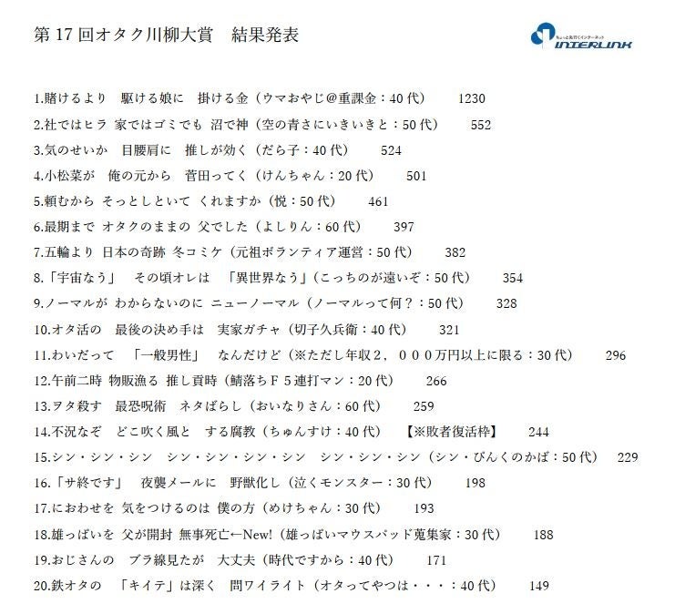 (※1)「オタク川柳」は株式会社インターリンクの登録商標です。
